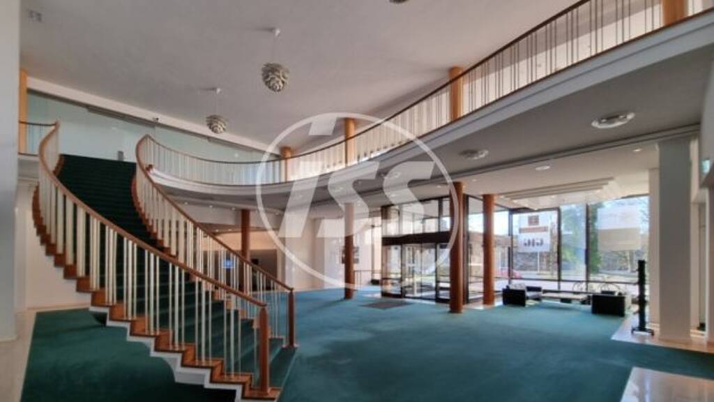 Sonstiges Im Erdgeschoß empfängt Ihre Besucher eine großzügige und repräsentative Eingangshalle und führt sie weiter zum hier angebotenen Mietbereich. Diese Mietfläche befindet sich im 1. OG des Anbaus und zeichnet sich durch helle und freundliche Büro- und Besprechungsräume sowie eine weitläufige Lobby aus. In diesem ehemalige Konferenzbereich stehen einem künftigem Nutzer flexible Büro-, Schulungs-, Besprechungs- und Ausstellungsräume zur Verfügung.
