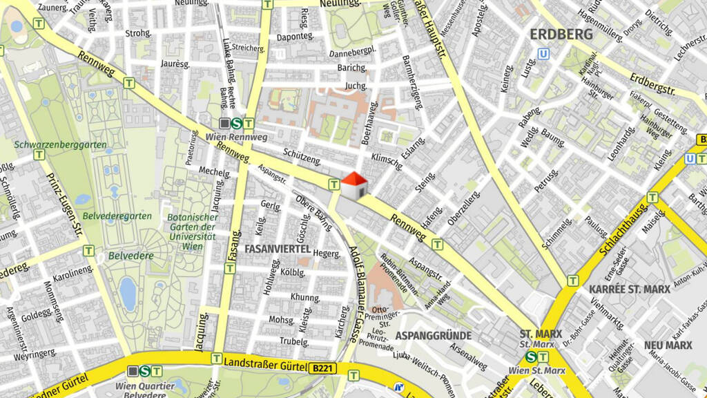 Das Büro- und Geschäftszentrum QBIK am Rennweg bietet beste Verkehrsanbindung: Die Straßenbahnlinie 71 hält direkt davor, die S-Bahn-Station Rennweg und die A23 sind in wenigen Minuten erreichbar.