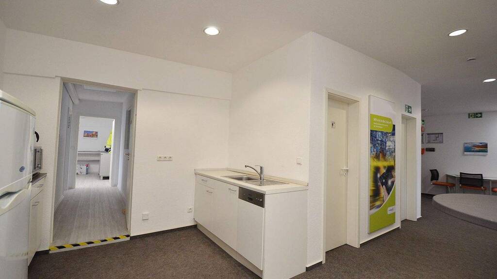 Das Büro verfügt über 4 Räume + offene Küche + getrennter Sanitäre Anlagen + Vorflur. Der Grundriss ist aus Leichtbauwänden gestaltet und ist veränderbar.
