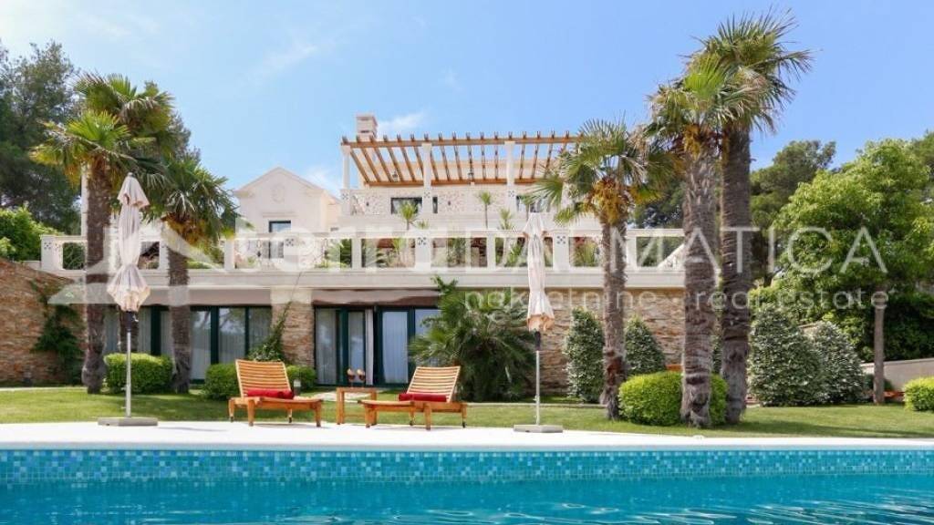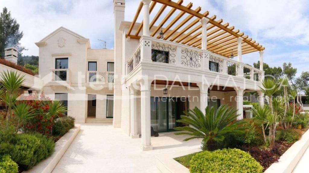 Auf der Insel Ciovo, in erster Reihe zum Meer und nur zehn Meter vom kristallklaren Wasser der Adria entfernt, liegt diese imposante, 980 m² große Villa auf einem 1.370 m² großen Grundstück. Die 2015 aus dem berühmten Brac-Stein erbaute Villa verströmt mediterranes Flair und zeitlose Eleganz und erstreckt sich über drei sorgfältig gestaltete Etagen.