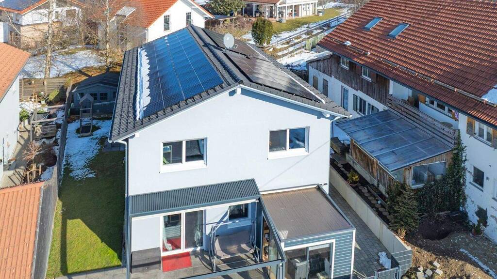 .Freistehendes Einfamilienhaus mit Einliegerwohnung in TOP-Zustand .Baujahr 2020, massive Bauweise .Ca. 191 m² Wohnfläche .Flexible Nutzung (Mehrgenerationenwohnen oder Teilvermietung) .Luftwärmepumpe & Photovoltaik mit Speicher .Fußbodenheizung, 3-fach verglaste Fenster .Glasfaser, LAN in allen Zimmern .Wallbox und 2 Garagenstellplätze .Zwei Einbauküchen inklusive .Markise auf der Terrasse vorhanden .Großer Schuppen im Garten inklusive .Kaltwintergarten für laue Sommerabende .Ruhige Wohnlage mit guter Infrastruktur