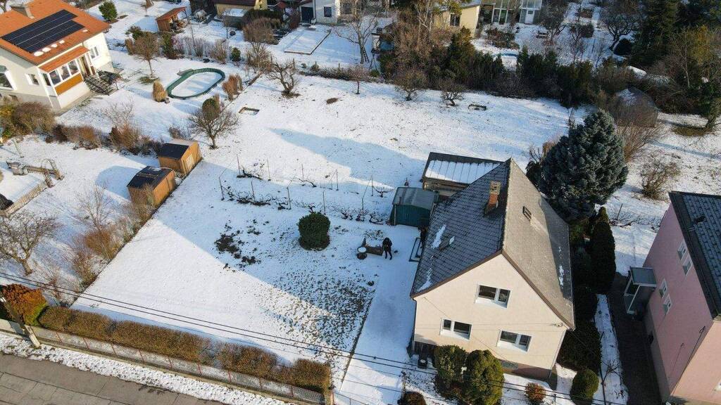 * auf der Liegenschaft befindet sich ein abbruchreifes Wohnhaus, bestehend aus Kellergeschoss, Hochparterre, Obergeschoss und Spitzboden, sowie Nebengebäuden (Gartenhütte, Geräteschuppen)