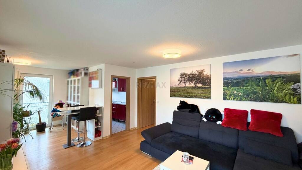# Großzügiges Wohnzimmer mit direktem Zugang zum Balkon # Abstellraum im UG inklusive # Tiefgaragenstellplatz optional 15.000 Euro # Hausmeisterservice - Folgende Kosten sind im Kaufpreis nicht enthalten und vom Käufer zusätzlich zu entrichten: Notar- und Grundbuchkosten (ca. 2 %), Grunderwerbsteuer (5 %), und die mit der Finanzierung entstehenden Kosten. 4,76 % Maklerprovision inkl. gesetzlicher MwSt.. Ab dem Zeitpunkt der Übergabe hat der Käufer die Grundsteuer zu tragen. Irrtümer vorbehalten. Die Objektdaten beruhen auf Angaben und Unterlagen, die uns vom Veräußerer zur Verfügung gestellt wurden. Für inhaltliche Richtigkeit und Vollständigkeit übernehmen wir keine Haftung. Eine Weitergabe an Dritte ist nicht gestattet. - Verpassen Sie keine Immobilie mehr! Unser komplettes Immobilienangebot finden Sie immer zuerst auf www.remax.de Gerne helfen wir Ihnen auch beim Verkauf oder der Vermietung Ihrer Immobilie. Karriere bei REMAX? Infos: www.remax.de/karriere