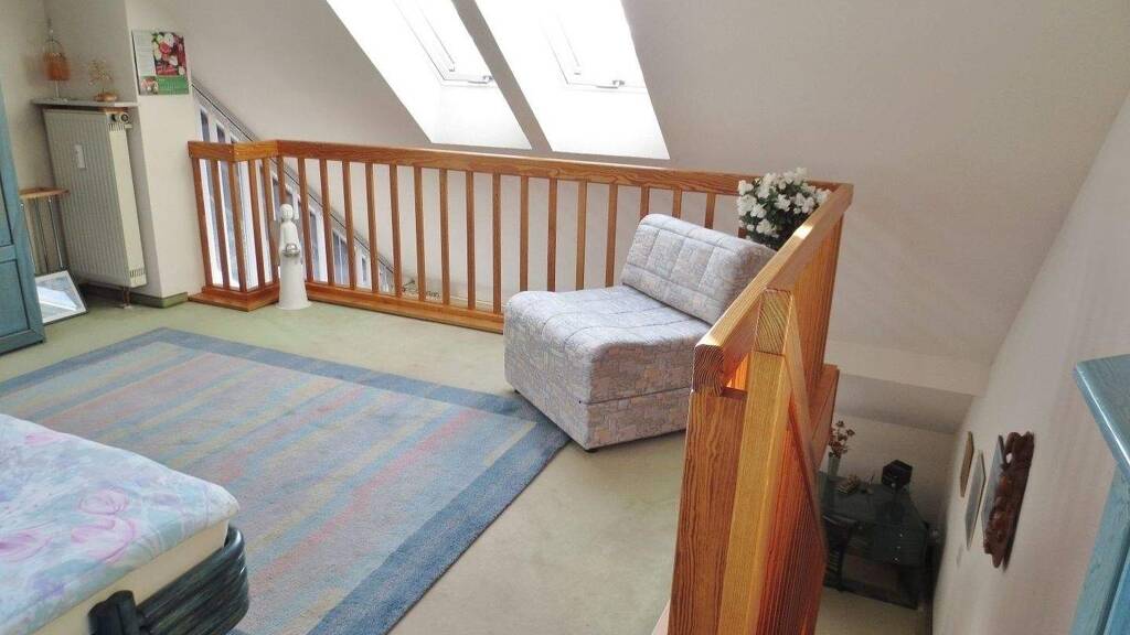 Ein Highlight der Wohnung ist der Dachbalkon. Hier kann man die Sonne in vollen Zügen genießen und hat gleichzeitig einen schönen Ausblick. Der Balkon bietet genug Platz für Pflanzen, ein kleines Bistro-Set oder einfach, um an warmen Tagen draußen zu entspannen.