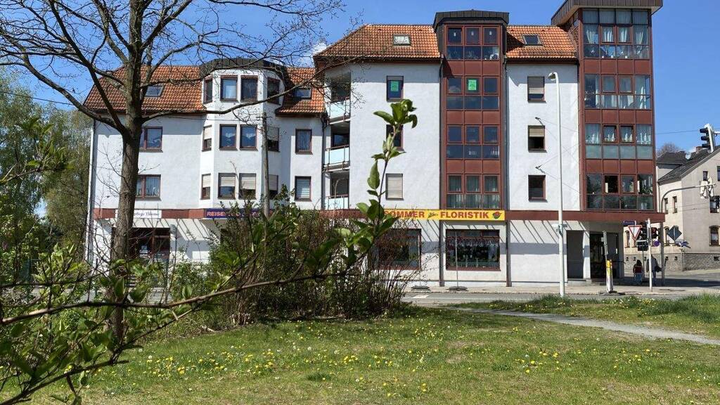 Im Wohn- und Geschäftshaus gibt es eine Sparkasse, einen Fleischer und einen Blumenladen. Nur zwei Häuser weiter ist eine Postfiliale, eine Apotheke und ein Bäcker. Ärzte sind zu Fuß in wenigen Minuten erreichbar.