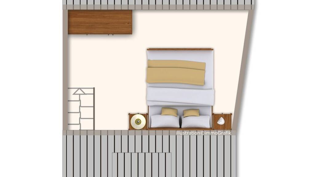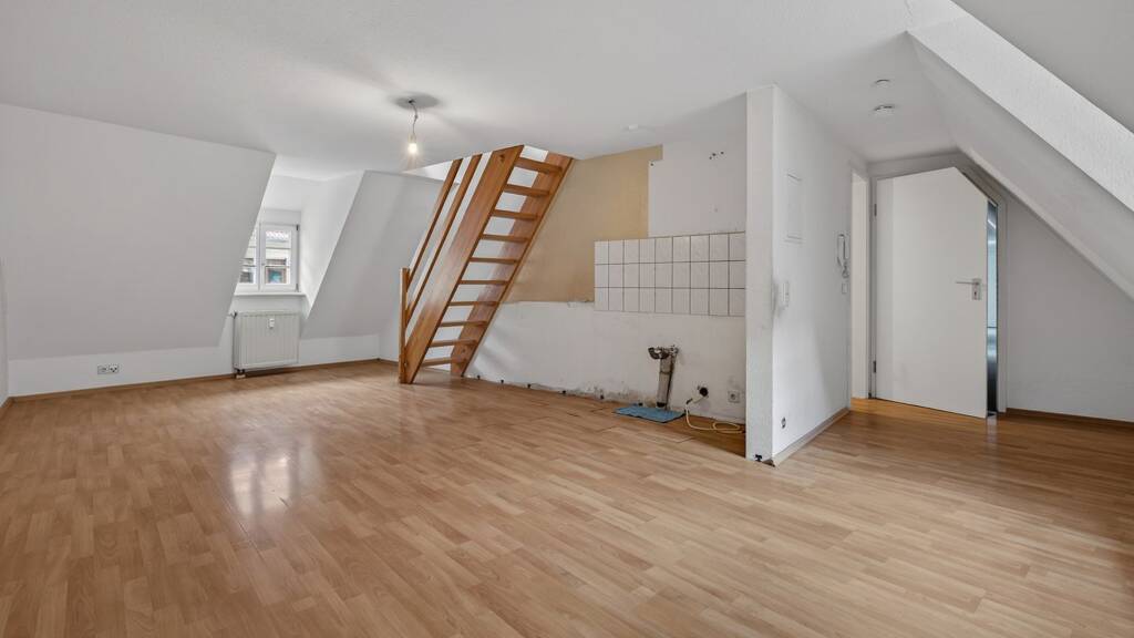 Auf einer Wohnfläche von ca. 33 m² bietet die Einheit ein durchdachtes Raumkonzept inklusive einer praktischen Küchenecke und einem funktionalen Duschbad. Ergänzt wird das Raumangebot durch einen ausgebauten Spitzboden, der über eine Treppe innerhalb der Wohnung erreichbar ist und sich ideal als Schlafbereich oder Homeoffice nutzen lässt.