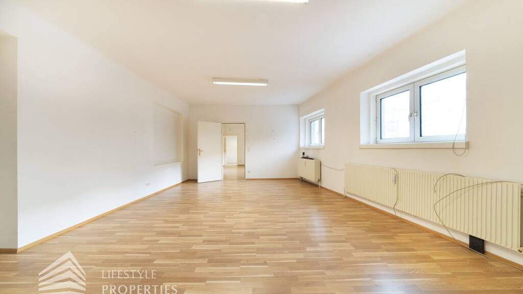 Dieses außergewöhnliche Objekt liegt im Mezzanin eines sehr gepflegten Hauses, welches um 1900 erbaut wurde und besitzt daher keinen Lift. Insgesamt stehen Ihnen ca. 100,18 m² Nutzfläche zur Verfügung. Durch die Struktur des Gebäudes ergibt sich ein Schnitt der Wohnräume in einer langen Trapez-Form, welche die Räume besonders ausgefallen macht. Im großzügigen Vorraum, welcher als einziger eine rechteckige Form besitzt, befinden sich eine Küchenzeile, ein Badezimmer und eine Toilette. Folgend betreten Sie einen überragenden Raum mit einer Größe von ca. 50 m², welcher insgesamt sieben Fenster besitzt, wovon drei davon in den Innenhof führen. Durch die Form und den Umfang entsteht hier ein Gefühl in einem Loft oder in einem Atelier zu residieren. Ein separates Zimmer mit ca. 32 m² liegt im Anschluss daran und bietet ausreichend Platz als Lagerraum oder zweiten Büroraum.