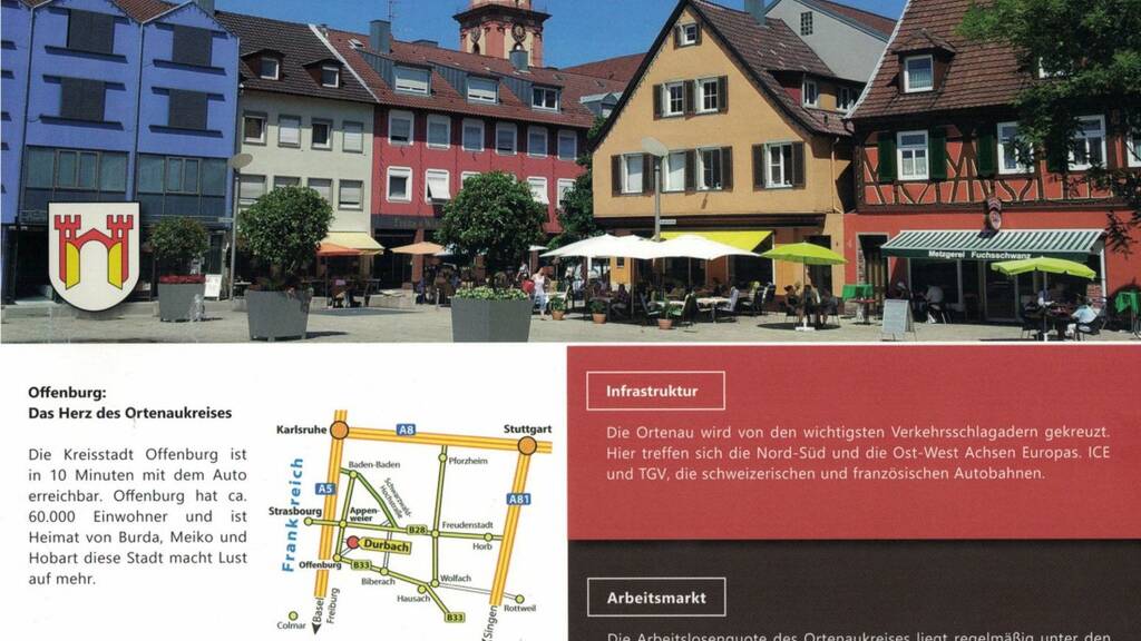 Die Kreisstadt Offenburg mit Autobahnanbindung und großem Bahnhof