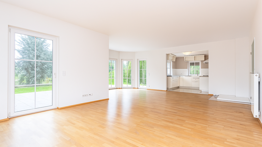Morgenlicht flutet durch bodentiefe Fenster in den großzügigen Wohnbereich, während das edle Eichenparkett unter den Füßen die Wärme des Zuhauses spürbar macht. Auf 204 Quadratmetern entfaltet sich ein Lebensgefühl von Weite und Geborgenheit zugleich. Das Obergeschoss wird zum privaten Refugium mit vier Zimmern und einer freistehenden Badewanne für entspannte Abendstunden. Die vollausgestattete Küche lädt zu kulinarischen Experimenten ein, während warme Fußböden für behagliche Momente sorgen. Unterm Dach wartet ungenutztes Potenzial auf kreative Ideen. Ihr ausführliches Exposé verrät Ihnen alle Details zu diesem besonderen Zuhause.