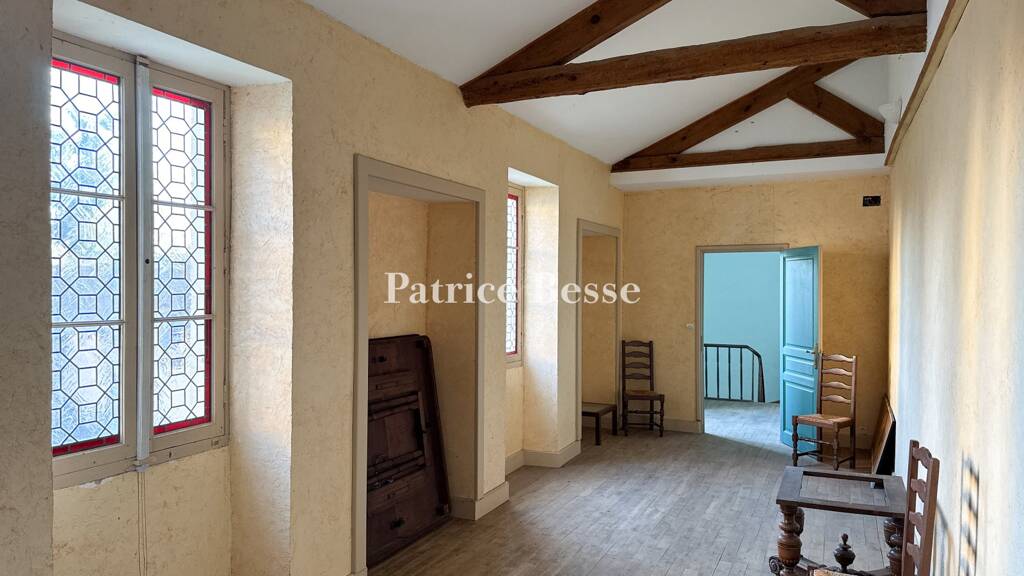 The main dwellingThere are five entrance doors, from either the grounds or the courtyard. The lounge, dining room and television room are all on the ground floor and boast considerable volumes, moulded ceilings, wood stripped flooring and, for some, walls with exposed stonework. They are laid out one after another and can be reached by two hallways with floors paved with old cement tiles. The wooden doors also boast colourful stained-glass windows with geometrical patterns. The immense, dual aspect, approximately 43-m² kitchen possesses a stone chimney with an open hearth and a wooden mantelpiece. The similarly sized scullery, which is very large for the purpose it serves, houses a wooden staircase leading upstairs to four bedrooms and a shower room.The first-floor apartmentIn the courtyard, a remarkable glazed wooden door, boasting six rectangular panes and three arched ones, is topped by a fanlight window and a solid wrought-iron awning frame. It opens onto a wooden staircase and is the sole entrance to the apartment, which has been partly renovated and is laid out lengthways. It is made up of a kitchen overlooking the courtyard, as well as a lounge, two bedrooms and a shower room overlooking the grounds, with old wood stripped floors.