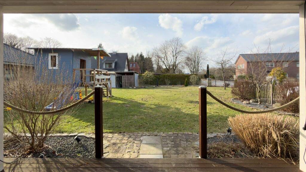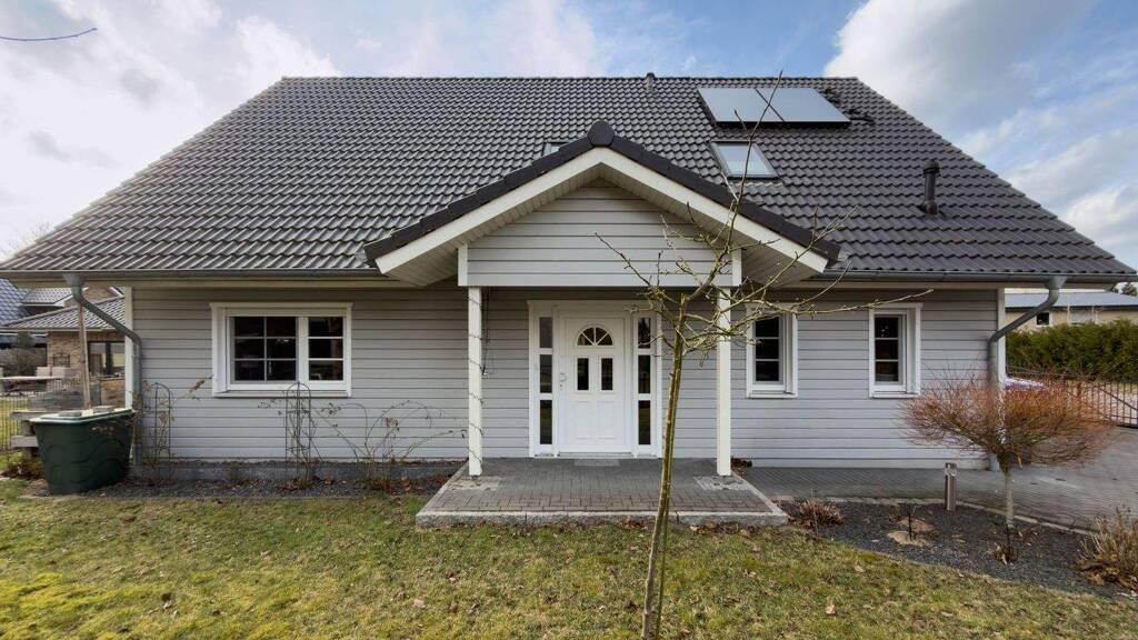 Dieses moderne Einfamilienhaus überzeugt durch eine durchdachte Raumaufteilung, moderne Ausstattungsmerkmale und ein angenehmes Wohnambiente – ideal für Familien oder anspruchsvolle Eigennutzer. Bereits beim Betreten des Hauses empfängt Sie ein großzügiger Eingangsbereich mit Blick auf die offene Galerie im Obergeschoss. Das Erdgeschoss bietet ein Duschbad sowie ein vielseitig nutzbares Zimmer, das sich ideal als Gäste-, Arbeits- oder Hobbyraum eignet. Herzstück des Hauses ist der großzügige, offen gestaltete Wohn-, Ess- und Küchenbereich. Der Kamin im Wohnzimmer sorgt für eine behagliche Atmosphäre, während drei Terrassentüren viel Licht hereinlassen und direkten Zugang zur einladenden Veranda bieten – perfekt für entspannte Stunden im Freien. Von der Küche aus gelangen Sie bequem in den angrenzenden Hauswirtschaftsraum. Im Obergeschoss befinden sich drei helle Zimmer sowie ein modernes Vollbad mit begehbarer Dusche. Zwei der Räume werden derzeit als Büro bzw. Kinderzimmer genutzt. Das Schlafzimmer überzeugt mit einer direkt angeschlossenen Ankleide und bietet einen privaten Rückzugsort. Der Dachboden steht als praktische Abstellfläche zur Verfügung. Das Haus wurde im energieeffizienten KfW-70-Standard errichtet und ist vollständig mit einer Fußbodenheizung ausgestattet. Eine Solarthermieanlage unterstützt die Warmwasserbereitung und trägt zur Reduzierung der laufenden Energiekosten bei. Zusätzlich ist das Haus mit manuellen Außenrollos ausgestattet, die sowohl Sicht- als auch Sonnenschutz bieten. Zwei PKW-Stellplätze runden das Angebot ab. Aktuell ist das Haus für EUR 1.317,- monatlich vermietet. Dieses Einfamilienhaus bietet ideale Voraussetzungen für Familien, die ein modernes Zuhause suchen. Überzeugen Sie sich gerne selbst bei einer gemeinsamen Besichtigung!