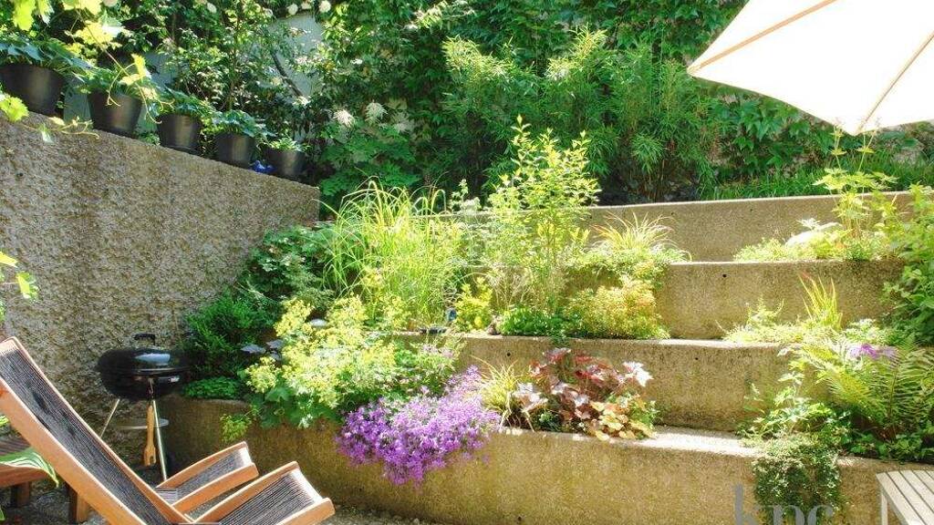 Die Hochparterre-Bauweise, die großzügigen, liebevoll bepflanzten Abböschungen mit Terrasse und die großen, stehenden Fensterflächen lassen hier nie ein Souterrain-Gefühl aufkommen. Lassen Sie sich davon gerne bei einer Besichtigung überzeugen!