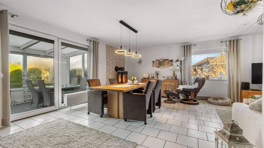 In ruhiger und äußerst angenehmer Wohnlage des beliebten Nordseeortes Dorum präsentiert sich dieses gepflegte und hochwertig ausgestattete Einfamilienhaus als wahres Wohlfühlzuhause. Nur unweit der Nordseeküste gelegen, verbindet die Immobilie entspanntes Wohnen mit dem besonderen Flair einer beliebten Urlaubsregion. Das im Jahr 1997 erbaute Haus wurde von den Eigentümern stets mit großer Sorgfalt gepflegt und kontinuierlich modernisiert und überzeugt heute durch eine hochwertige, moderne Ausstattung, eine durchdachte Raumaufteilung und zahlreiche liebevolle Details, die ein komfortables und stilvolles Wohnen ermöglichen. Bereits beim Betreten des Hauses empfängt Sie ein einladender kleiner Windfang mit praktischer Garderobe, von dem aus Sie in einen großzügigen und hellen Flur gelangen, der einen harmonischen Übergang zu den Wohnräumen schafft. Das Herzstück des Hauses bildet das lichtdurchflutete Wohnzimmer mit großen Fensterflächen sowie einem neuen Holz- bzw. Pelletofen, der an kühleren Tagen eine besonders behagliche Atmosphäre schafft. Direkt angrenzend befindet sich eine überdachte Terrasse mit Seitenwindschutz, die zu entspannten Stunden im Freien einlädt und einen schönen Blick in den liebevoll angelegten Garten ermöglicht. Die hochwertige Einbauküche lässt keine Wünsche offen und verfügt zusätzlich über eine Tür zu einer kleinen überdachten Morgenterrasse, auf der sich der Tag mit einer Tasse Kaffee an der frischen Nordseeluft besonders angenehm beginnen lässt. Im Obergeschoss erwartet Sie ein modernes, neu gestaltetes und barrierefreies Badezimmer mit komfortabler Dusche sowie ein ruhiges und schönes Schlafzimmer mit angenehmer Wohnatmosphäre. Außerdem befindet sich auf dieser Etage eine separate kleine Ferienwohnung beziehungsweise eine zusätzliche Wohneinheit, die sich ideal für Gäste, für das eigene Kind oder auch zur Vermietung an Feriengäste eignet. Der ausgebaute Spitzboden bietet zusätzliche Nutzfläche und kann flexibel als Hobbyraum, Gästezimmer oder persönlicher Rückzugsort genutzt werden. Für zusätzlichen Komfort sorgen zahlreiche praktische Ausstattungsdetails wie Fliegengitter an allen Fenstern, ein moderner Glasfaseranschluss für schnelles Internet, eine lange Garage mit Platz für zwei Autos sowie ein zusätzlicher Außenstellplatz. Das Grundstück überzeugt mit einem idyllisch und liebevoll angelegten Garten, der viel Ruhe, Privatsphäre und Möglichkeiten zur Erholung bietet. Abgerundet wird dieses besondere Angebot durch die ruhige Lage nahe der Nordsee sowie eine ausgesprochen nette und angenehme Nachbarschaft. Dieses wunderschöne Haus vereint hochwertige Wohnqualität, eine attraktive Lage in einem beliebten Urlaubsgebiet und vielseitige Nutzungsmöglichkeiten und bietet damit die ideale Gelegenheit für alle, die das Leben nahe der Nordseeküste genießen möchten.
