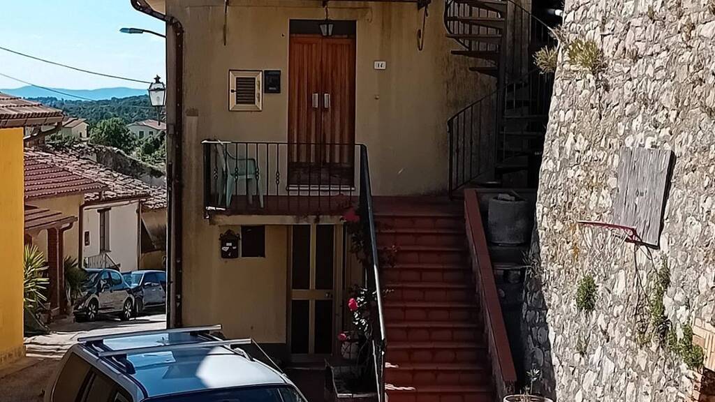"Das Haus von Gianfranco" - Dieses Verkaufsangebot umfasst eine zweistöckige Wohnung mit eigenem Eingang im Zentrum des Ortes. Sie erstreckt sich über 2 Ebenen und ist wie folgt aufgeteilt: Im Erdgeschoss befinden sich zwei Räume, einer als Küche genutzt, der andere als Schlafzimmer, während im ersten Stock, der über eine Außentreppe zugänglich ist, eine Küche, zwei Doppelzimmer und ein Bad zu finden sind. Der Eigentum umfasst außerdem ein ca. 500 m² großes Grundstück mit zwei Nebengebäuden, ideal für verschiedene Nutzungen.