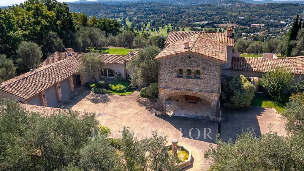 Dieses Prestigeobjekt, das Raffinesse, Komfort und Sicherheit vereint, erstreckt sich über ca. 600 m² Wohnfläche und bietet einen atemberaubenden Blick auf den Golfplatz und das herrliche Mittelmeerpanorama von der Bucht von Nizza bis Mandelieu.