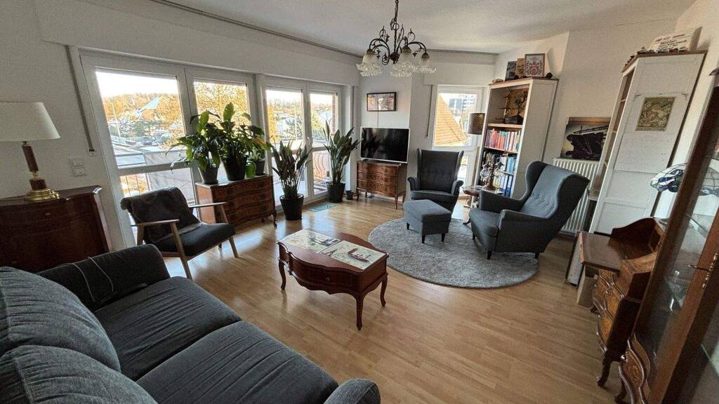 . WOHNKOMFORT . Kunststoff Iso Fenster . Etagenheizung . Heller Wohnbereich mit großer Fensterfront und Zugang zum Balkon