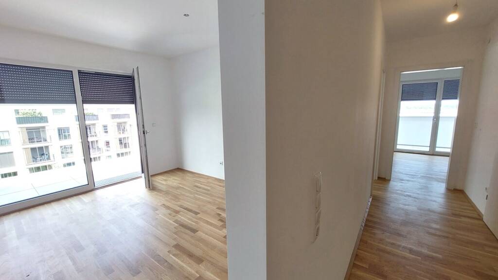 Vorraum, separates WC und Schrankraum geben zusätzlich Platz, um die wesentlichen Bereiche des Lebens strukturiert zu halten. In allen Räumen wird hochwertiger Parkettboden oder moderne Bodenfließen verlegt.