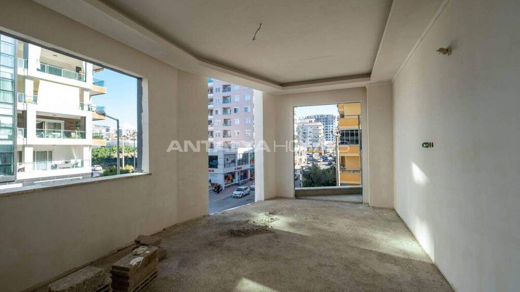Die Apartments befinden sich in einem Komplex in Alanya, Mahmutlar. Sie sind mit PVC-Fenstern, einer Außentür aus Stahl und Parkettböden ausgestattet.