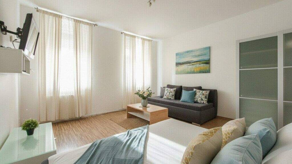 Ursprünglich als Apartments genutzt, sind alle Wohnungen möbliert, gut erhalten und funktional gestaltet. Sie verfügen über voll ausgestattete Küchen inklusive Geräte und sind somit sofort bezugsbereit.