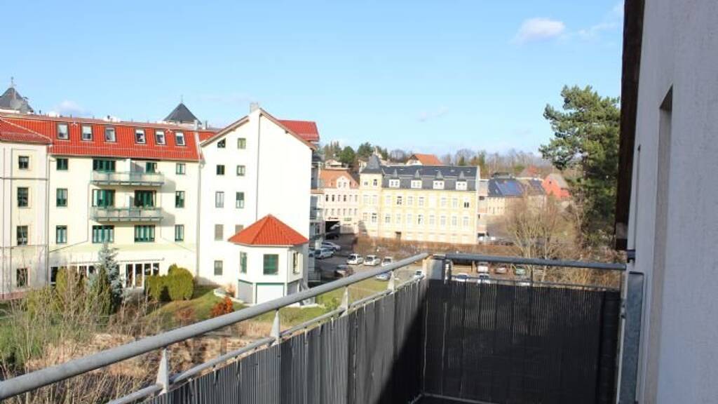 Die Wohnung verfügt über einen großen Balkon mit Blick auf die Mulde.