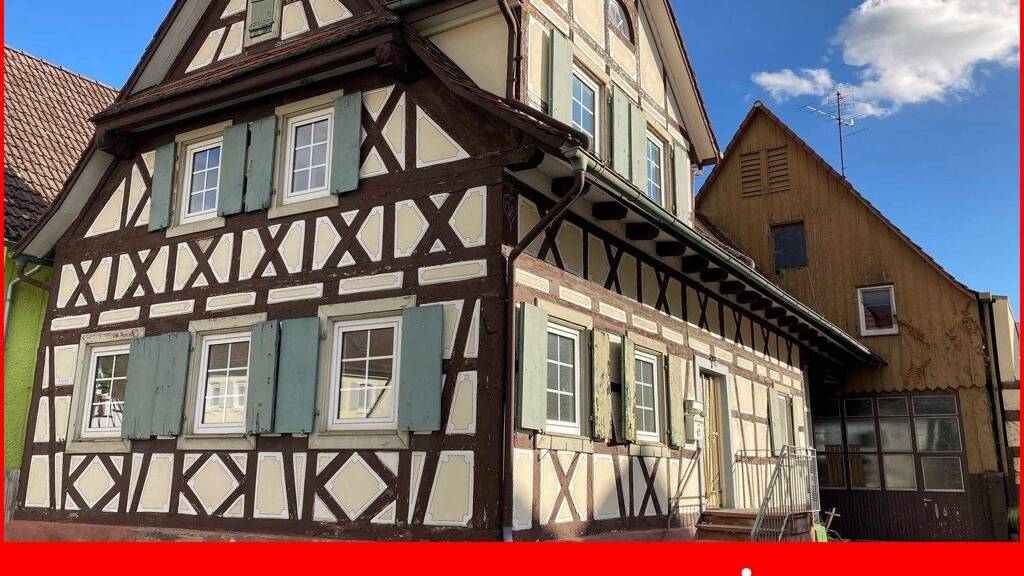 Das denkmalgeschützte Einfamilienhaus mit Einliegerwohnung, Scheune und Garten verfügt über eine Grundstücksfläche von 413 m² und liegt in zentraler Lage von Friesenheim.