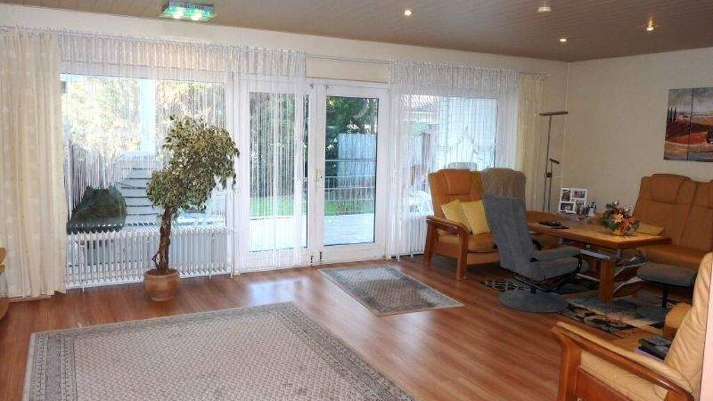 Das sehr gepflegte Einfamilienhaus verfügt im Erdgeschoss über ein großes Wohnzimmer mit Essecke, eine Küche mit moderner Einbauküche und ein Gäste-WC.