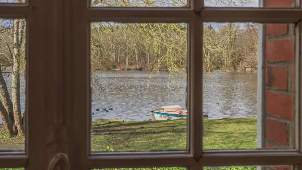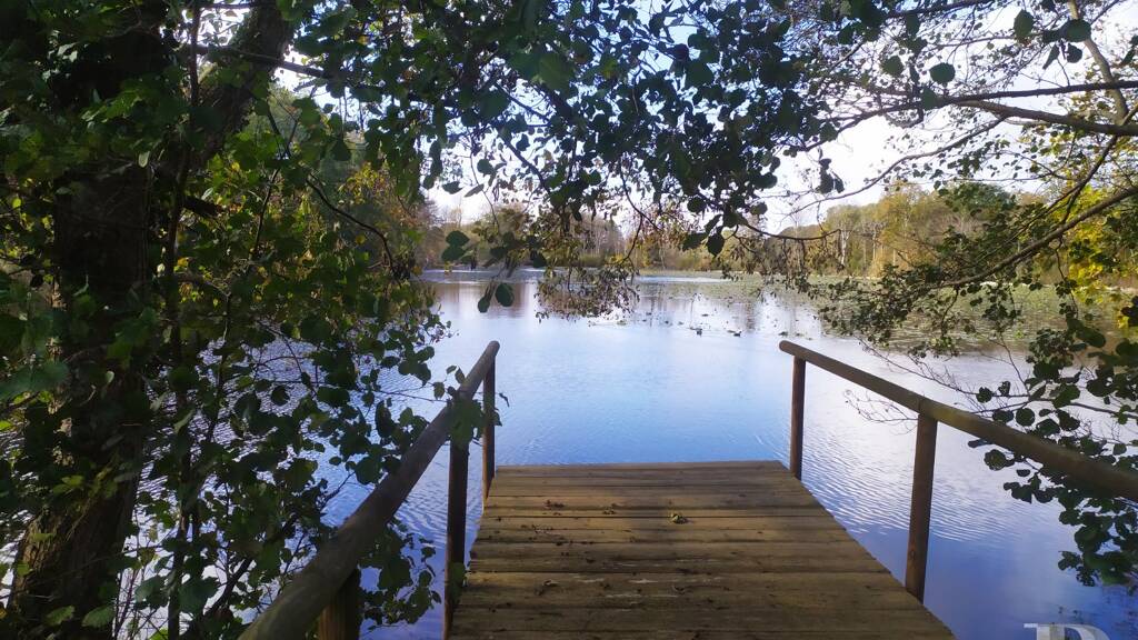 Protected by a high gateway, the property is accessed via a 300 m driveway surrounded by woodland, which leads to an immense lake, home to a multitude of migratory birds.