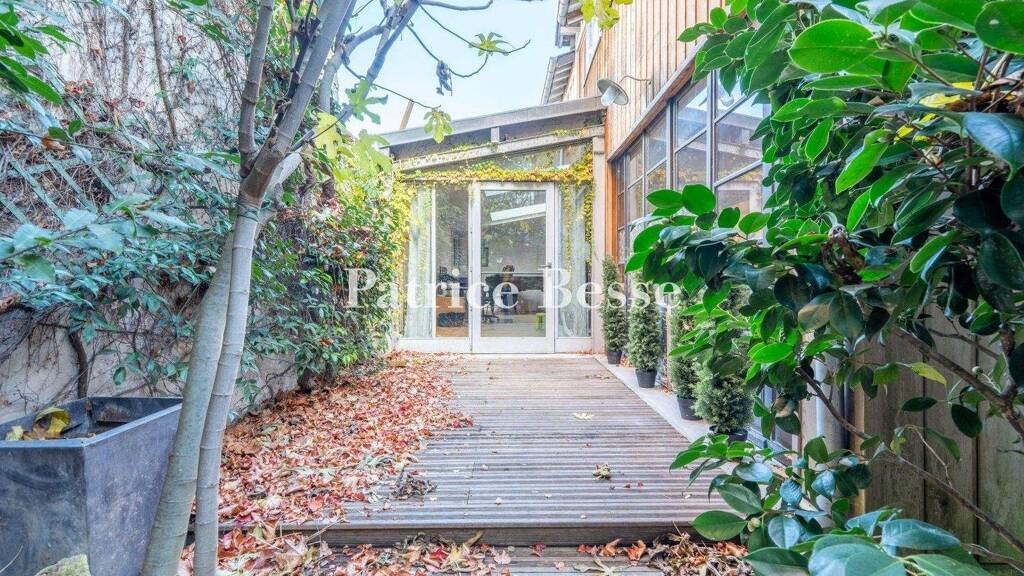 The three-storey edifice, one of which is in the attic space, has a basement level, dates back to 1850 and can be found in a one-way street. To the west, on the street side, there are 6 rectangular windows on the light-coloured brick facade adorned with decorative tuffeau stone features. On the first level, they frame an arched, double-leaf, wooden carriage door and a window with a triangular pediment supported by sculpted corbels. On the second storey, above the carriage gate, a corbelled balcony with wrought-iron balustrades and adorned with a denticulated and corbelled cornice grace the facade, below a slate roof. On the third level, the roof is punctuated by two dormers with inflected arches. On the garden side, the annexes boast facades with wooden facing and roofs made of zinc and slate. The interiors are bathed in light and boast light-coloured wood stripped flooring and white walls. To the rear, the house opens onto a courtyard adorned with foliage, the converted annexes and a small garden. A boiler room and two cellars can be found in the basement level.