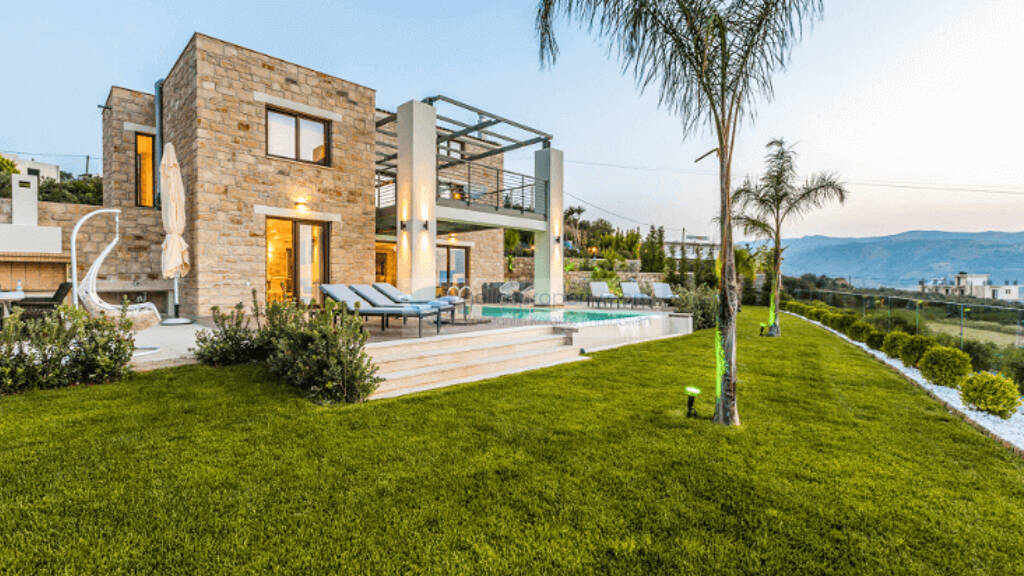 Exquisite Luxus-Villa mit Steinelementen, Pool & Panoramameerblick bei Kissamos!