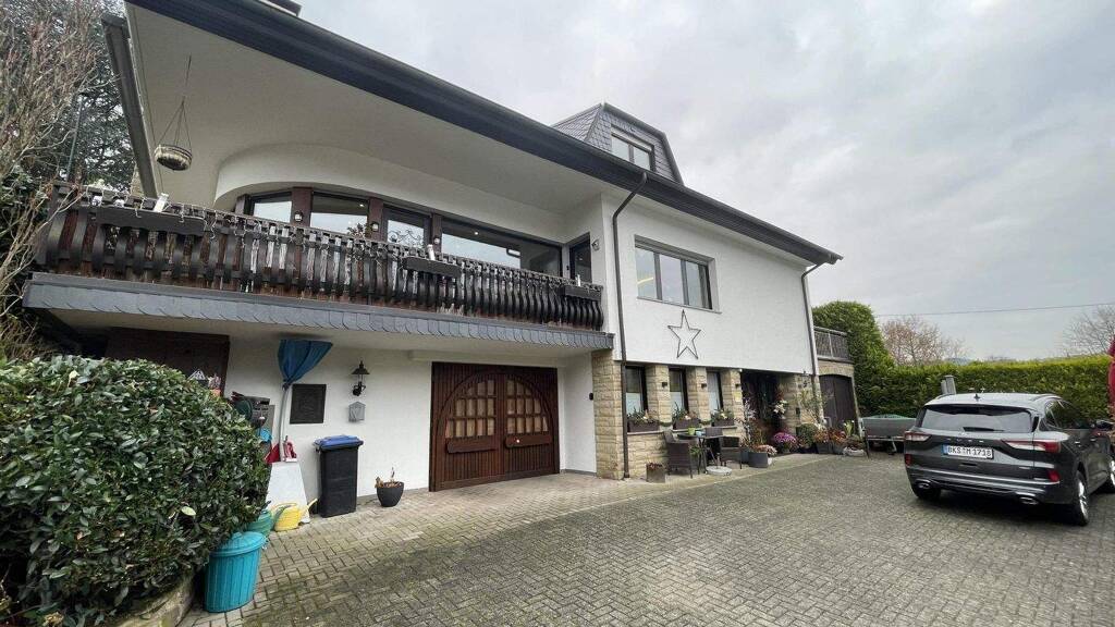 Insgesamt befindet sich das Haus in einem sehr guten Zustand, da immer wieder Renovierungen vorgenommen wurden. Das Dach wurde 2010 erneuert und ist mit Naturschiefer eingedeckt, die Bäder wurden 2022 erneuert und 2015 wurden die kompletten Außenanlagen erneuert, sowie das Glashaus angebaut. Eine zweite Haustüre mit Klingelanlage ermöglicht den Zutritt durch den Garten. In der langen Einfahrt des Hauses gibt es zwei Carports und genügend Stellfläche für mehrere PKWs.