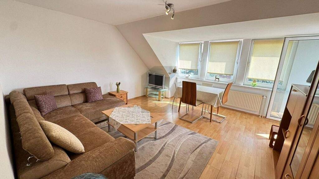 Die ca. 58m² große 2,5 Zimmer-Wohnung begeistert mit durchdachtem Grundriss, hellen Räumen, moderaten Dachschrägen und sonnigem Süd-Balkon. Ausbau 1993, gepflegtes Mehrfamilienhaus von 1965. Ein eigener Stellplatz und Kellerraum sind inklusive. Die funktionale Einbauküche ist gut erhalten. Hausgeld nur 152 EUR/Monat, Heizung vor wenigen Jahren erneuert, ein klarer Pluspunkt. Ruhig wohnen, dennoch zentral: Einkaufsmöglichkeiten, Schulen und Bahnhof sind schnell erreichbar. Ob gemütliches Eigenheim oder wertstabile Kapitalanlage - diese Wohnung vereint Wohnkomfort, Sonnenbalkon und attraktive Lage.