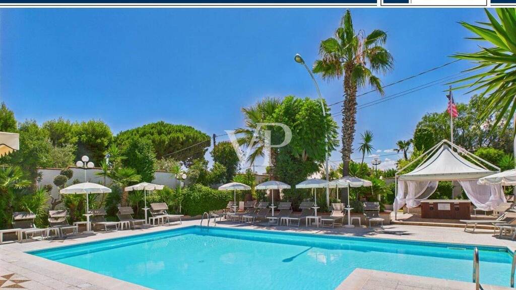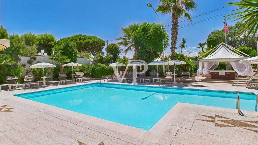 Nur 400 Meter vom Meer entfernt, bieten wir das Hotel Villa zum Verkauf an, eine exklusive Hotelstruktur in strategischer und reservierter Lage, eingebettet in einen grünen Kontext von großer landschaftlicher Wirkung.