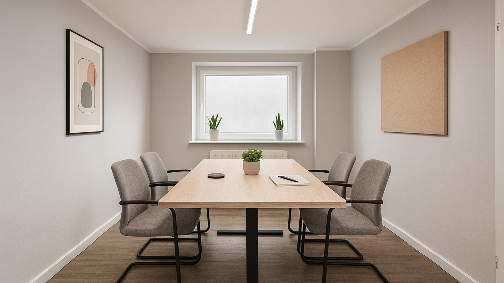 Das Büro liegt in Reinhausen bei Göttingen - eine charmante Region, die Ruhe, Erreichbarkeit und Lebensqualität vereint. Öffentliche Parkplätze findest du ganz in der Nähe, und auch die Anbindung in die Göttinger Innenstadt ist unkompliziert. Du arbeitest nicht nur in inspirierender Atmosphäre, sondern auch in einem Ort, der Fokus und Flexibilität perfekt verbindet. Und während das Büro gerade frisch umgebaut wird, geben dir stilvolle KI-generierte Bilder einen ersten Eindruck vom modernen Konzept: offene, aber gegliederte Räume, die konzentriertes Arbeiten auf angenehme Weise ermöglichen.