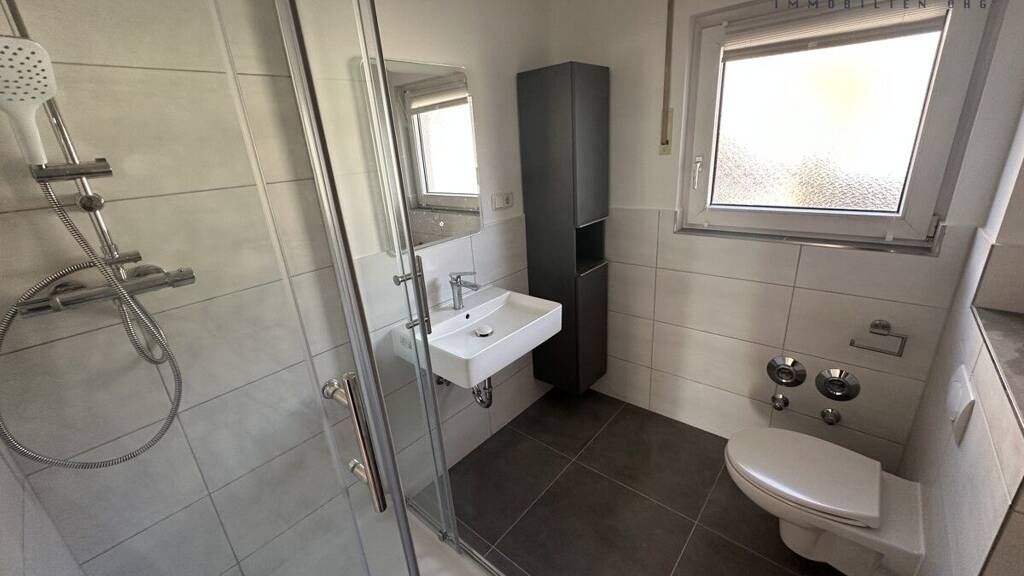 Besonders angenehm präsentiert sich das modernisierte Badezimmer: Es verfügt über eine neue Dusche, ein modernes WC und ein frisches Waschbecken - ein kleiner, stilvoller Rückzugsort, der Ihren Alltag verschönert.