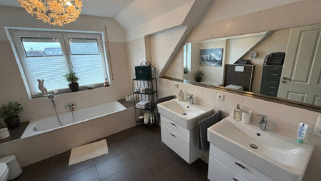 - Tageslichtbad mit Dusche, Badewanne und Doppelwaschbecken