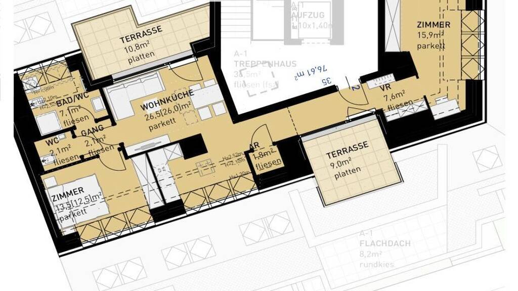Sollten Sie mehr Platz benötigen, planen wir auch gerne eine größere Wohnung (zB eine 4-Zimmer-Wohnung anstelle von zwei nebeneinander liegenden 2-Zimmer-Wohnungen) für Sie. Fragen Sie einfach bei unserem Vertrieb nach!
