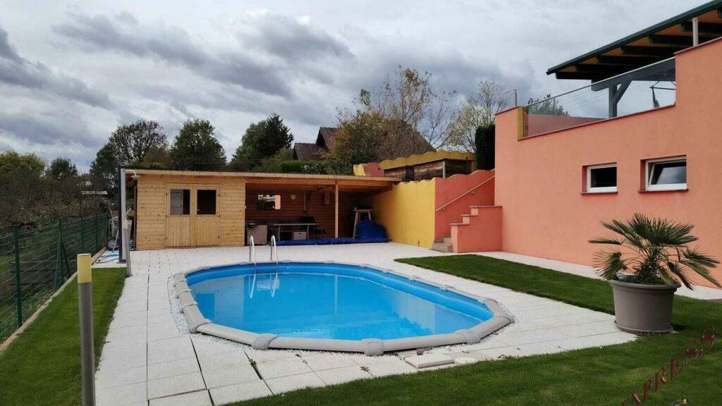 Im Außenbereich erwartet Sie ein wunderschöner Pool- und Gartenbereich mit gemütlicher Poolhütte sowie ein Nebengebäude mit Garage, überdachtem Abstellplatz und Photovoltaikanlage (Bj. 2022). Der Pool wird über eine Wärmepumpe beheizt und dank der PV-Anlage energieeffizient betrieben - ideal für nachhaltiges Wohnen mit Komfort.