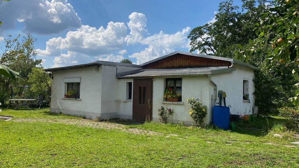 Das Grundstück zu ca. 1.164 qm wurde um 1990/91 mit einem aparten Einfamilienhaus und überdachten Terrasse bebaut. Die Bauweise ist massiv. Ein kleiner Keller (nicht vollständig unterkellert) ist ideal nutzbar als Getränkelager. Das Wohnhaus verfügt schätzungsweise über eine Wohnfläche von ca. 70 qm. Es stehen insgesamt 4 Wohnräume zzgl. einem kleinem Bad sowie Flur und eine Küche zur Verfügung. Der Dachboden ist bereits ausbaut. Das Erd- und Dachgeschoss ist über eine Holz.Klappbodentreppe verbunden. Der kleine Sanitärbereich besteht aus einem WC, Dusche und Waschbecken. Der Standart des Bades ist baujahrstypisch. Des Weiteres ist das Objekt mit den ortsüblich anliegenden Medien erschlossen. Gas liegt nicht an. Warmwasser erfolgt über Boiler und / oder Durchlauferhitzer.