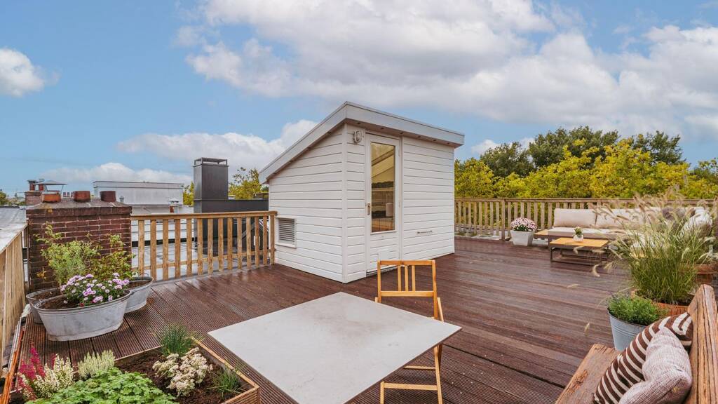 the true highlight of this property is the spacious roof terrace of approx. 38m². a fixed staircase leads to the top floor, providing direct access to this exceptional outdoor retreat. extending across the entire width of the property, it offers unique, unobstructed views over the sarphatipark and the city skyline.