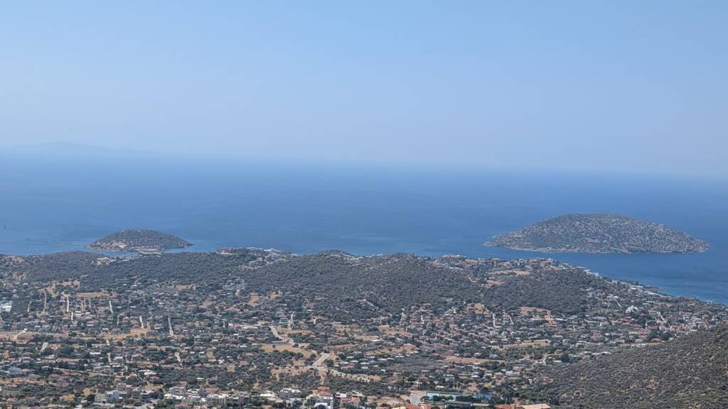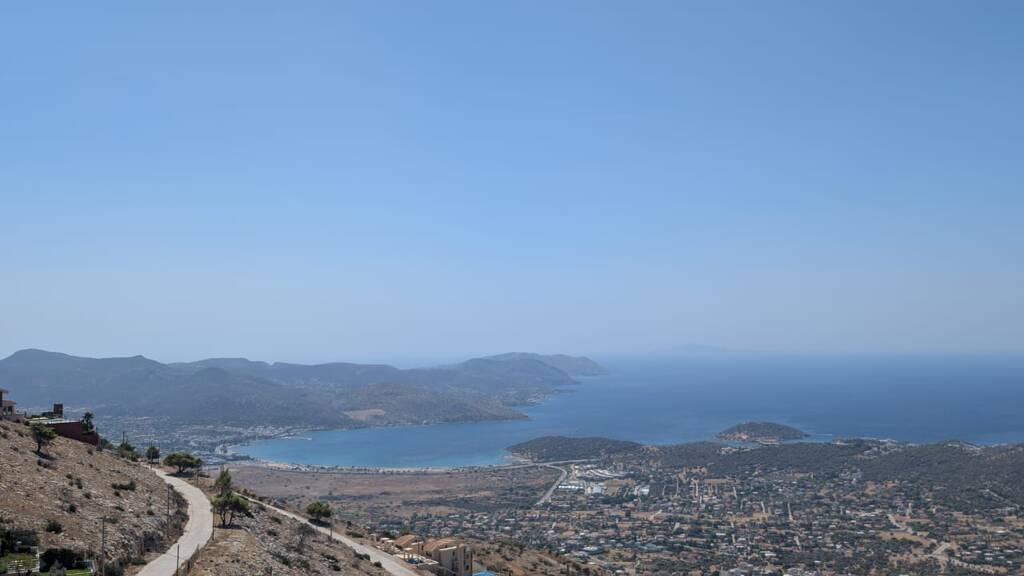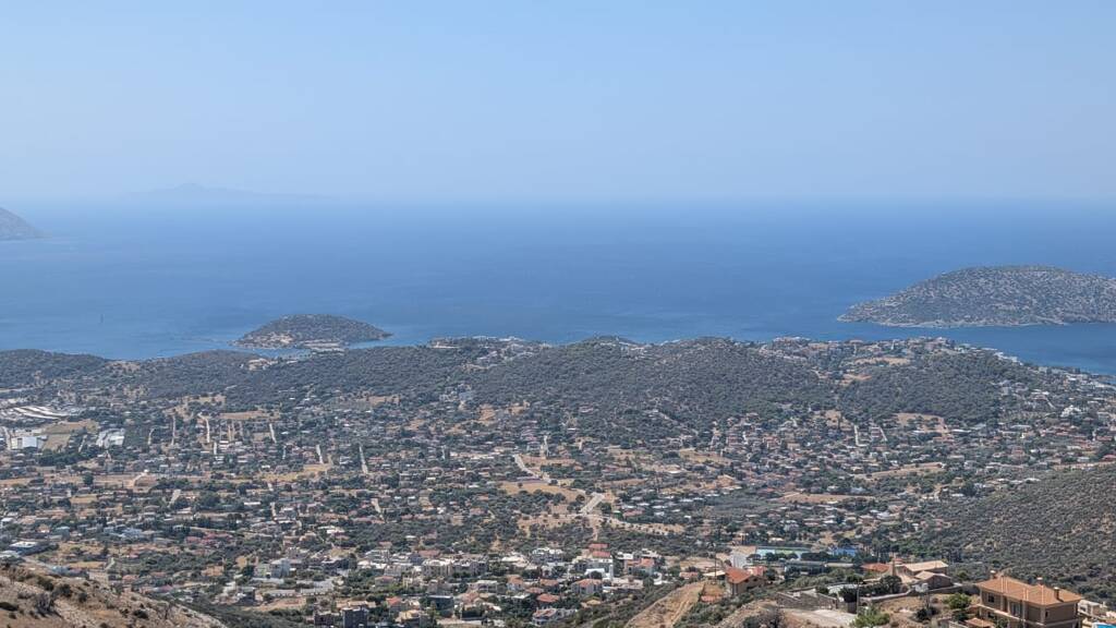 Das Grundstück bietet einen atemberaubenden Panoramablick auf das Meer, mit freier Aussicht über die Athener Riviera und den Saronischen Golf. Die erhöhte Lage garantiert Privatsphäre und ungestörte Sicht, während sich die Umgebung dynamisch entwickelt und zahlreiche Neubauten entstehen.