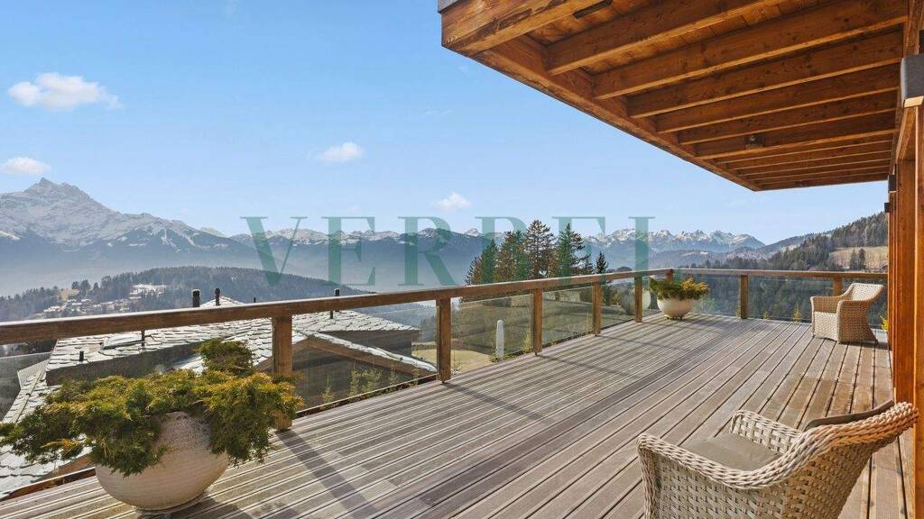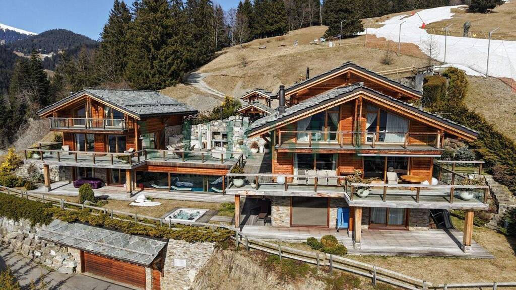 Ideal am Rande der Pisten gelegen, bietet diese Domaine aus zwei Chalets, die durch einen einzigartigen Wellnessbereich verbunden sind, ein exklusives Ski-in/Ski-out-Erlebnis, das einen direkten Zugang zum Skigebiet ermöglicht und gleichzeitig eine spektakuläre Aussicht auf die Dents du Midi bietet.