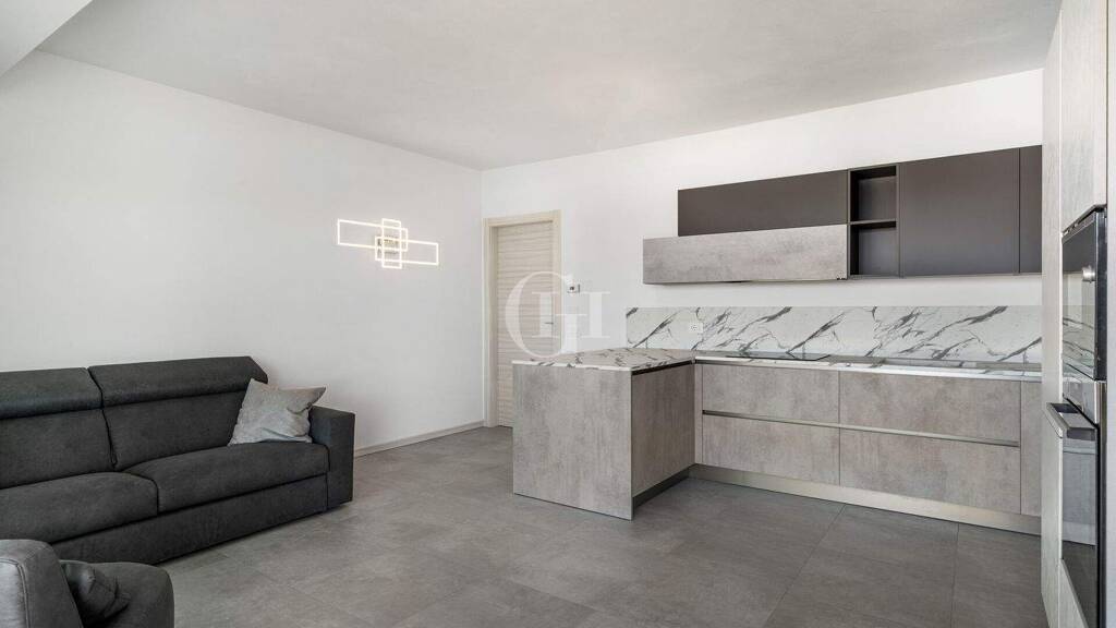 Die Wohnung öffnet sich zu einem großen, hellen Wohnbereich, der die Geselligkeit und das tägliche Leben fördern soll, mit direktem Zugang zu einer privaten Terrasse von 18 Quadratmetern, die einen schönen Blick auf den See bietet. Der Schlafbereich beherbergt zwei gut proportionierte Doppelschlafzimmer und ein Badezimmer mit Fenster, das mit hochwertigen Materialien und Oberflächen ausgestattet ist. Die Immobilie wird durch einen privaten, perfekt gepflegten Garten vervollständigt, der zusätzliche Privatsphäre und Grünfläche bietet.
