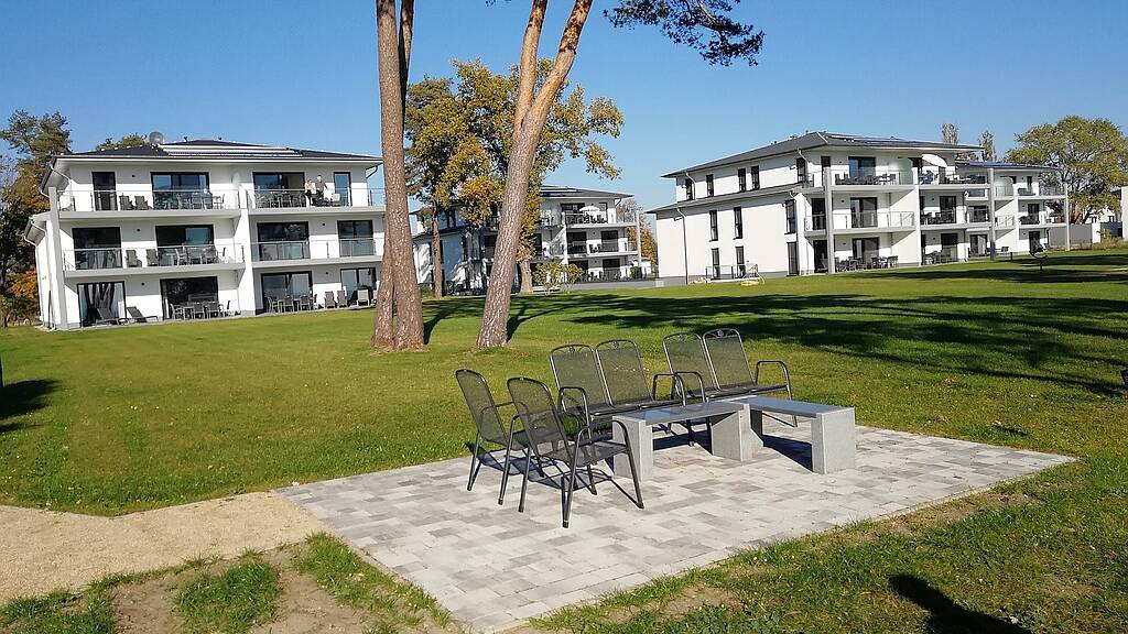Die Oase am Haff; besticht durch ihre einmalige Süd - Lage direkt an der Kliffkante zum Stettiner Haff. Die Oase besteht aus mehreren Häusern, die in aufgelockerter Bauweise alle zum Haff hin ausgerichtet sind. Die Wohnungsgrößen liegen zwischen ca. 98 m² und ca. 119 m² WFL.