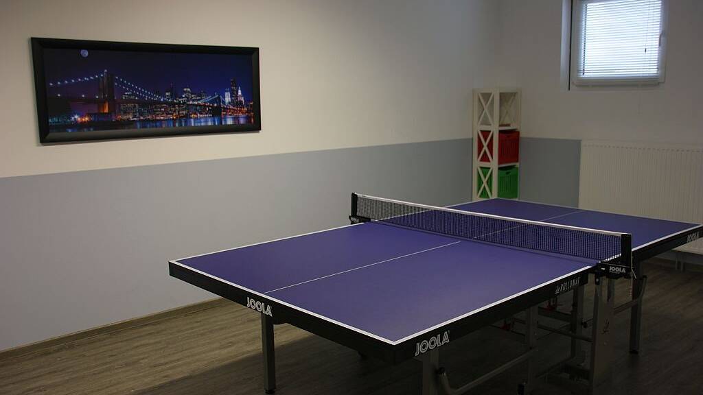 Und wer es gerne sportlicher mag, kann seine Kondition in der „Eisenabteilung“ an verschiedenen Geräten testen. Eine Tischtennisplatte sowie Tischfußball runden das Entspannungs- und Fitnessangebot ab.