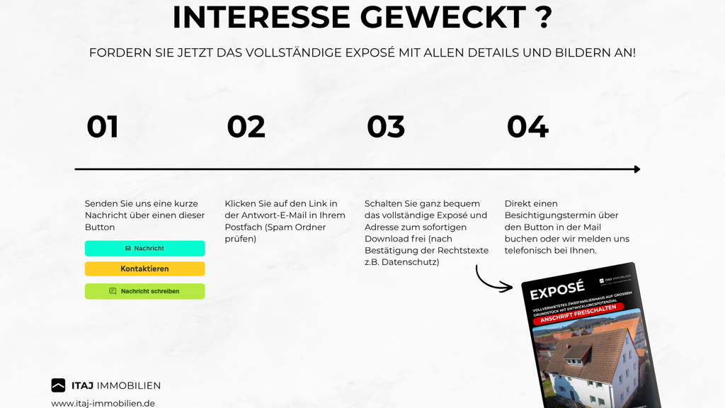 Laut der EU-Verbraucherrechte-Richtlinie (Fernabsatzrecht) sind wir verpflichtet, von allen Interessenten bei einer Anfrage - z.B. per Internet, E-Mail, Telefon oder Brief - die Identität zu prüfen (§2 Abs. 10 GwG). Wir benötigen, falls noch nicht geschehen, den vollständigen Namen mit Adresse und Telefonnummer. Ohne diese Angaben können wir keine Adressen zu Objekten bekannt geben. Dazu sind alle Immobilienmakler verpflichtet. Der Schutz Ihrer personenbezogenen Daten bei der Erhebung, Verarbeitung und Nutzung ist uns ein wichtiges Anliegen. Ihre Daten werden im Rahmen der gesetzlichen Vorschriften geschützt. Gerne können wir darüber bei der Besichtigung oder im Telefonat sprechen. Der Gesetzgeber räumt außerdem bei allen Dienstleistungen, deren Verträge per Telefon, per Internet oder über andere Fernkommunikationsmittel abgeschlossen werden, ein Widerrufsrecht ein. Eine Widerrufsbelehrung wird Ihnen bei einer Anfrage durch uns zugeschickt. Erst wenn Sie diese bestätigt haben, können wir detaillierte Informationen zum Objekt versenden.