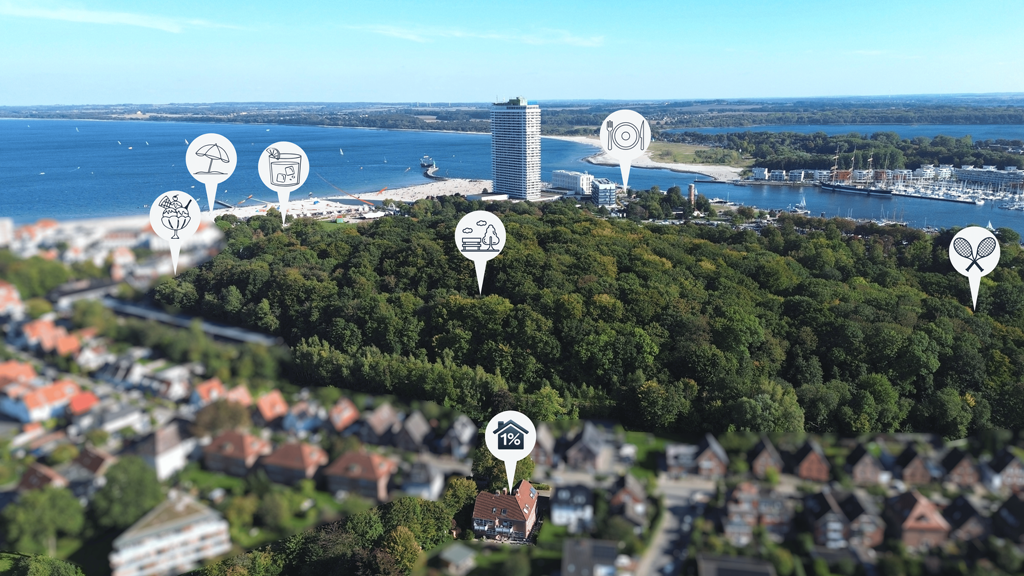 Diese attraktive Eigentumswohnung befindet sich in einer der begehrtesten Wohnlagen von Travemünde - ruhig, grün und zugleich zentrumsnah. Direkt gegenüber liegt der idyllische Kurpark mit seinem alten Baumbestand, Kletterwald, Tennisplatz und einem Yogazentrum - ideal für aktive Erholung direkt vor der Haustür. Die Umgebung zeichnet sich durch gepflegte Nachbarschaft, viel Grün und eine entspannte, maritime Atmosphäre aus.