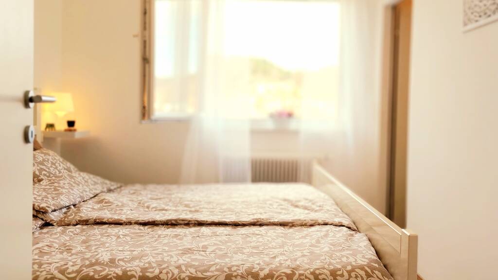 Im Schlafzimmer steht ein großes und bequemes 1,80m x 2m weißes Bett für dich bereit. Vom Fenster aus kannst du bis zum Naherholungsgebiet Kreuzbergl schauen. Spiegel und Stauraum befinden sich sowohl im Schlafzimmer als auch im Flur und im großzügigen Badezimmer, das du vom Schlafzimmer aus erreichst.