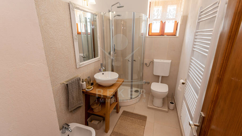 Kurzbeschreibung steinhausvilla-vodice-pool-taverne Objekt Tauchen Sie ein in die ruhige Eleganz dieser einzigartigen Steinhausvilla in Vodice! Umgeben von einem malerischen Olivenhain bietet dieses Anwesen die perfekte Kombination aus Tradition und Moderne. Entspannen Sie am Pool, bereiten Sie köstliche Mahlzeiten am Steingrill in der Outdoorküche zu und genießen Sie den mediterran gestalteten Garten. Die Alleinlage garantiert absolute Privatsphäre und Ruhe. Erleben Sie das wahre kroatische Lebensgefühl in diesem exquisiten Rückzugsort.