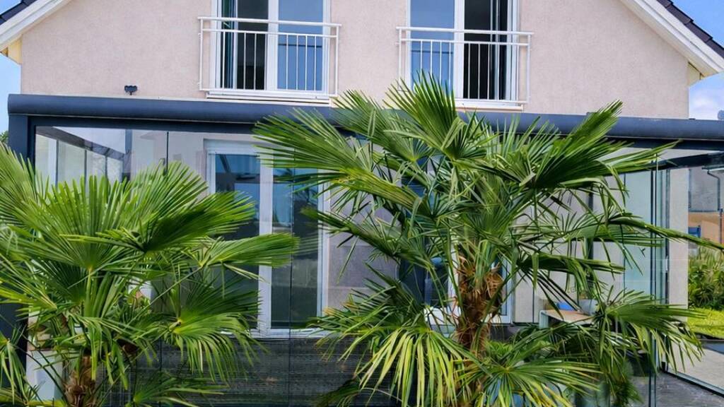 Die Ausstattung umfasst eine moderne Küche, eine energieeffiziente Wärmepumpe, Klimaanlage und Fußbodenheizung für behagliche Abende. Die Doppelgarage und ein Stellplatz vor dem Haus bieten ausreichend Platz für Fahrzeuge und Stauraum.