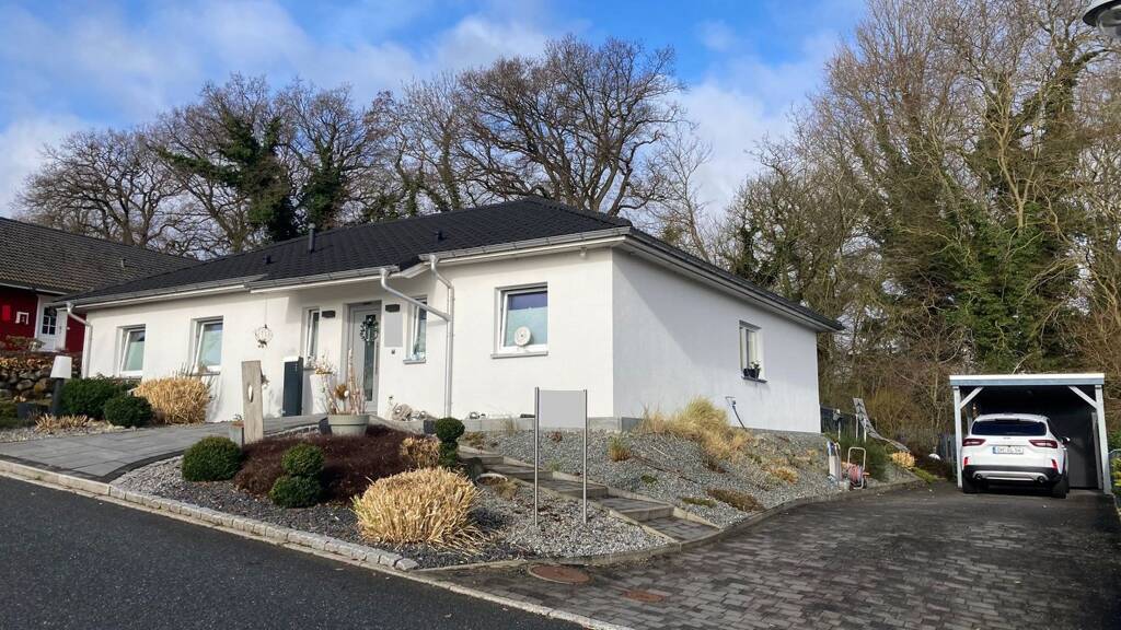 Das hier von uns im Rahmen eines qualifizierten Makler-Alleinauftrages angebotene Grundstück ist mit einem Walmdachwinkelbungalow, einem Carport und einem kleinen Gartenhaus nebst Leseplatz bebaut.